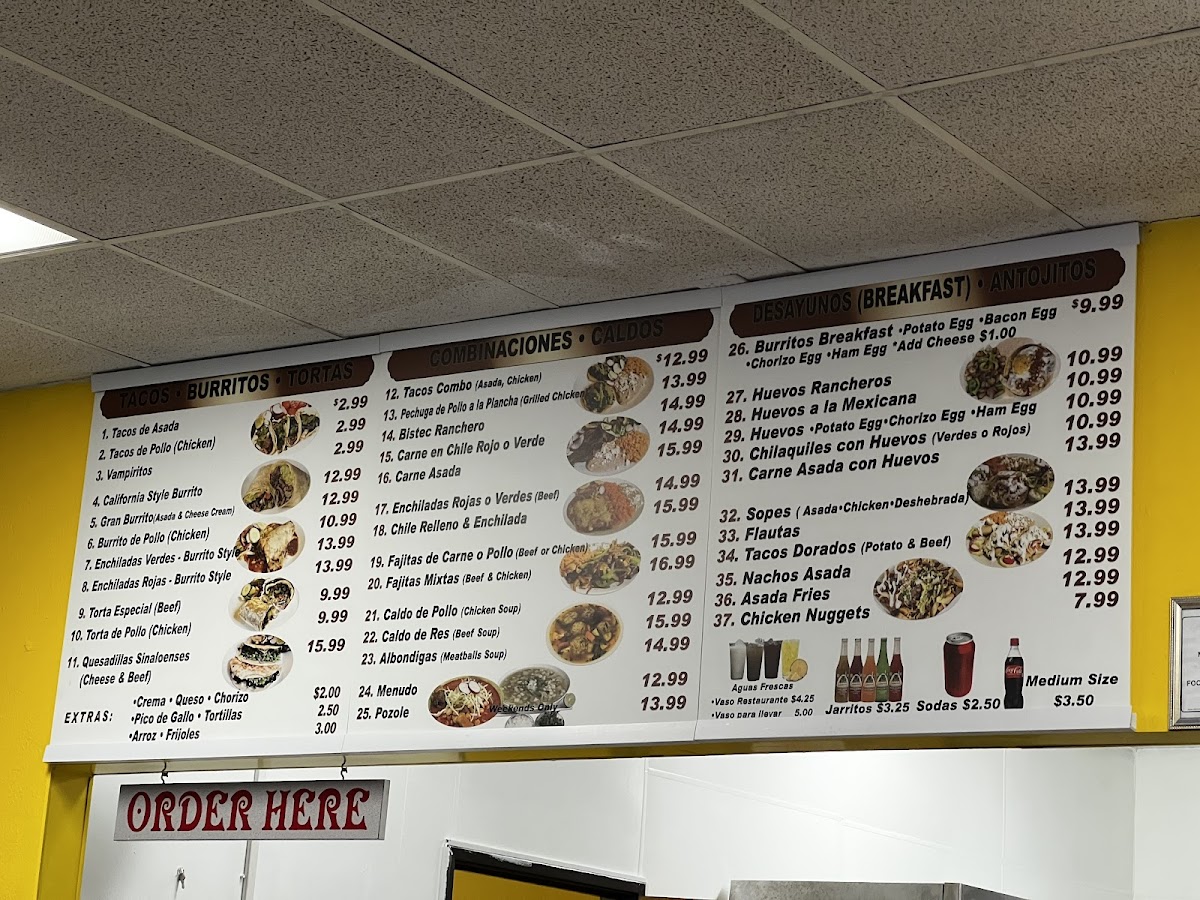 Choice of asada or chicken, rice, beans , cheese, pico de gallo, sliced alAvocado, French fries