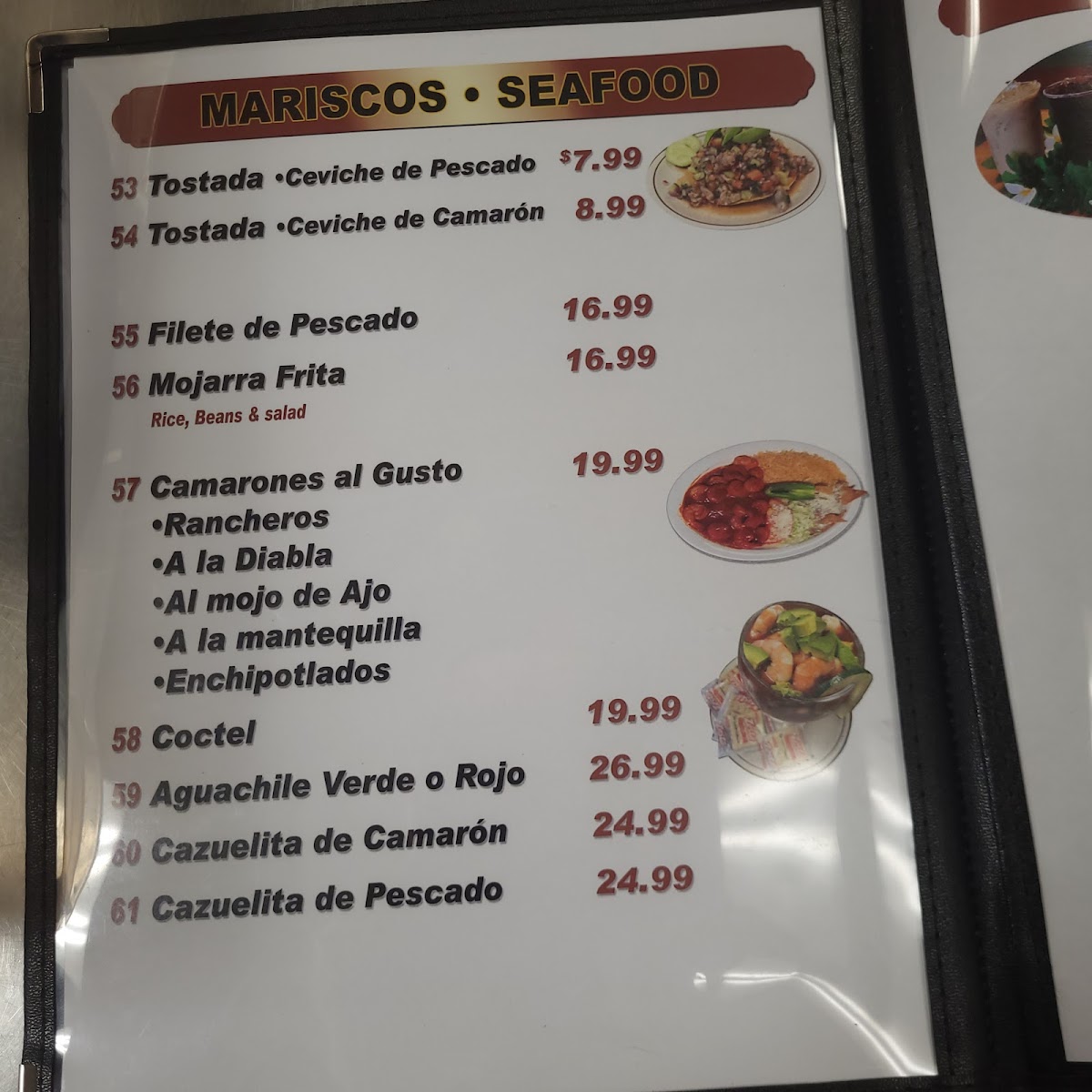 Choose shrimp cooked a la Diabla, Rancheros, mojo de ajo, a la mantequilla